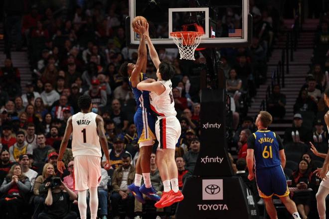 2025年10月25日 杨瀚森7分钟2分1板2帽 开拓者轻取勇士迎首胜 库里空砍35+6