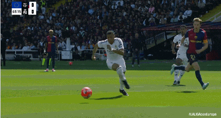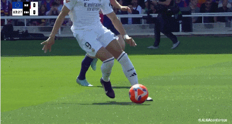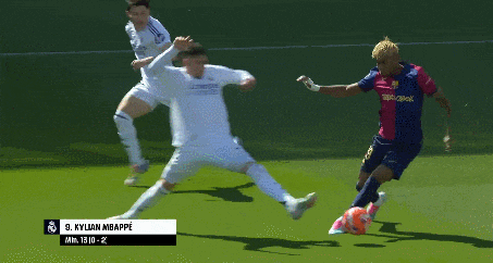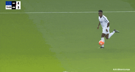 第14分钟,皇马抓住这个争议机会立马反击,维尼修斯带着球像一阵风似的突破,突然给姆巴佩送出直塞,单刀。