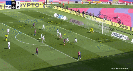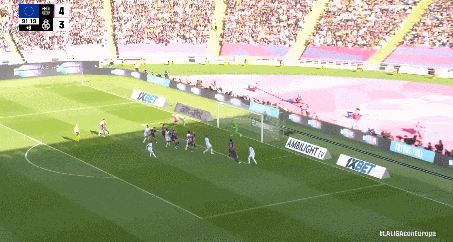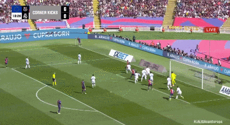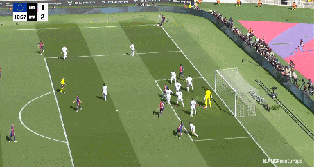 第19分钟,巴萨的机会来了!费兰主罚这个角球,他助跑节奏很稳,皮球精准送到前点——费兰自己头球摆渡!加西亚后排插上,纵身一跃抢在防守球员之前甩头攻门!球进了!1-2!