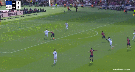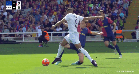 半场快结束了还出状况!巴斯克斯停球失误送礼,费兰断球后送出精准直塞,拉菲尼亚插上推射远角得手!4-2。
