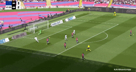 不同角度看看这个球!13分钟连入三球,从1-2到3-2,巴萨用一波疯狂进攻彻底改写战局,皇马防线彻底乱了。
