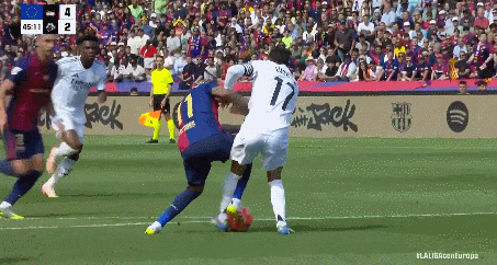 巴尔韦德踩踏亚马尔脚踝,这么明显的犯规居然没吹罚。