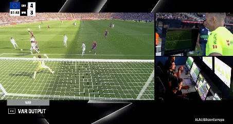 VAR来了!反复回看发现费尔明接球时手臂触球了!主裁示意进球取消!